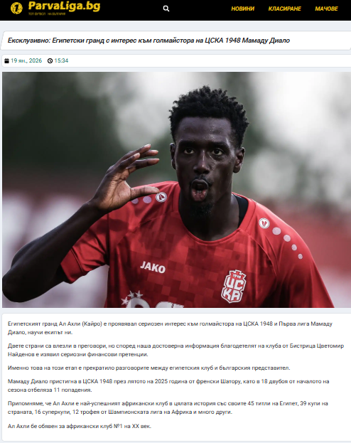 كشفت تقارير صحفية عالمية أن النادي الأهلي أبدى اهتمامًا جادًا بالتعاقد مع مامادو ديالو، لاعب نادي سسكا 1948 البلغاري.